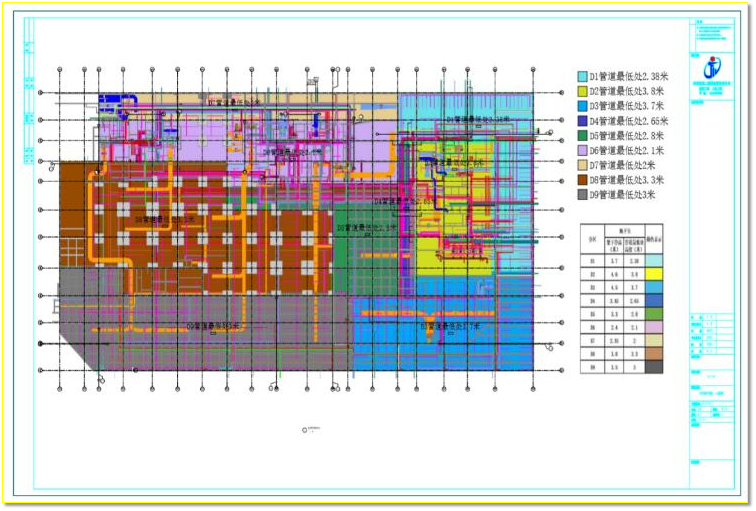 对深化后的机电BIM进行净高分析,统计不同区域的净高,方便各方负责人查看。
