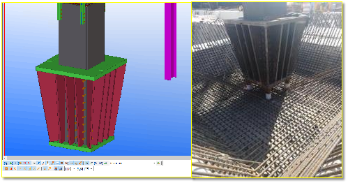 在设计模型的基础上,进行钢结构深化,并生成加工图和安装图共计616张,指导加工和安装。柱脚深化及现场施工: