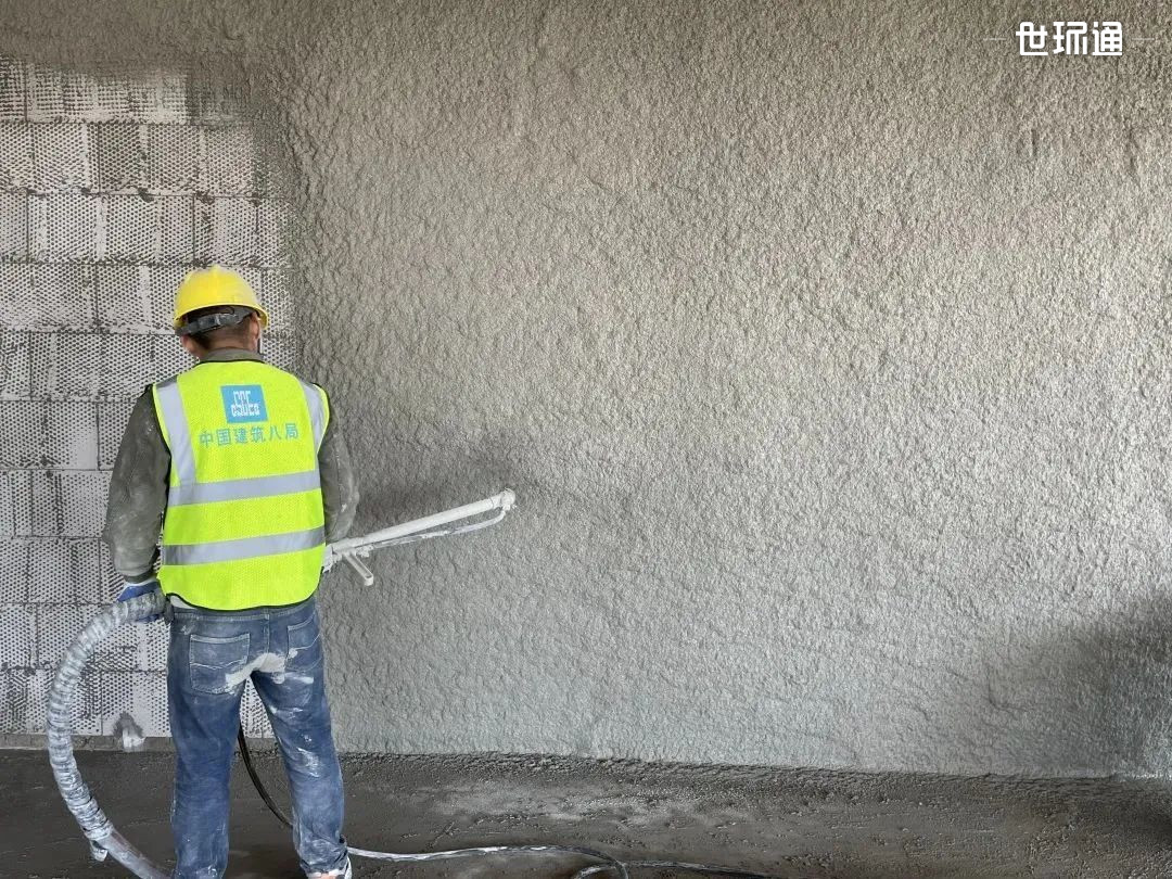 2、改变传统的涂抹工艺,由涂抹改为喷涂。减少劳务工人的人力投入,并且避免因人为因素产生的质量不均衡;通过喷涂,保证涂层的均匀性,砂浆搅拌后上墙快,减少开裂、空鼓隐患;