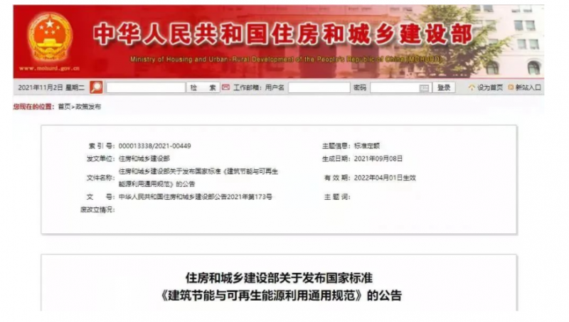 众所周知,我国建筑行业不仅是国民经济的重要支柱,同时也对实现碳达峰、碳中和的宏伟目标具有重要的意义,为此,住房和城乡建设部发布国家标准《建筑节能与可再生能源利用通用规范》的公告。批准《建筑节能与可再生能源利用通用规范》为国家标准,编号为GB 55015-2021,自2022年4月1日起实施。本规范为强制性工程建设规范,全部条文必须严格执行,现行工程建设标准相关强制性条文同时废止。