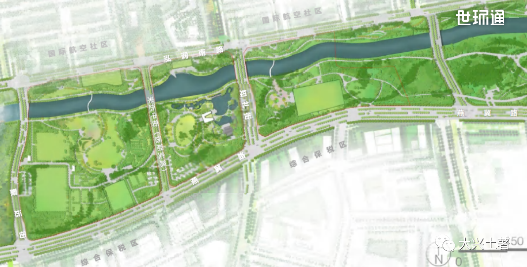 大兴机场临空区中央公园(一期)位于大兴区南部,毗邻大兴机场,总用地面积约57.68公顷,建筑面积约1.2万平方米。规划方案提出,依托自然边界、城市道路,中央公园(一期)被划分3个功能区,分别是时尚运动休闲区、中国传统文化区和国际艺术融合区。