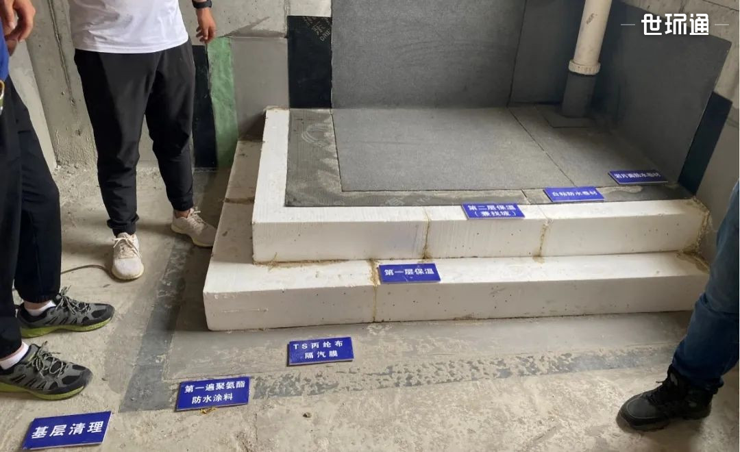 建设单位对于防水防渗漏问题尤为重视,施工前七彩建设与山海大象集团就屋面防水保温系统设计进行了多次交流,最终敲定该方案。该屋面做法样板在建设单位、设计单位、监理单位多方审核后得到认可,同时建设单位对七彩建设能将复杂设计实际施工落地的能力表示肯定。