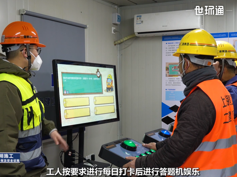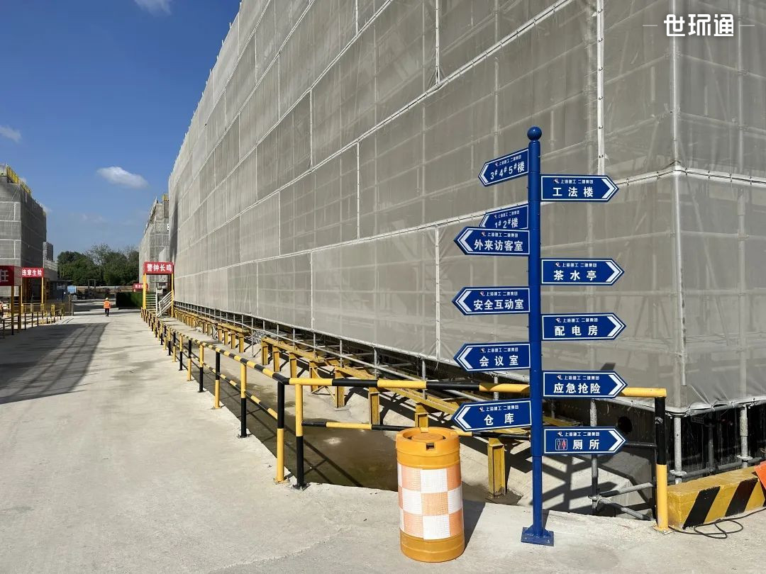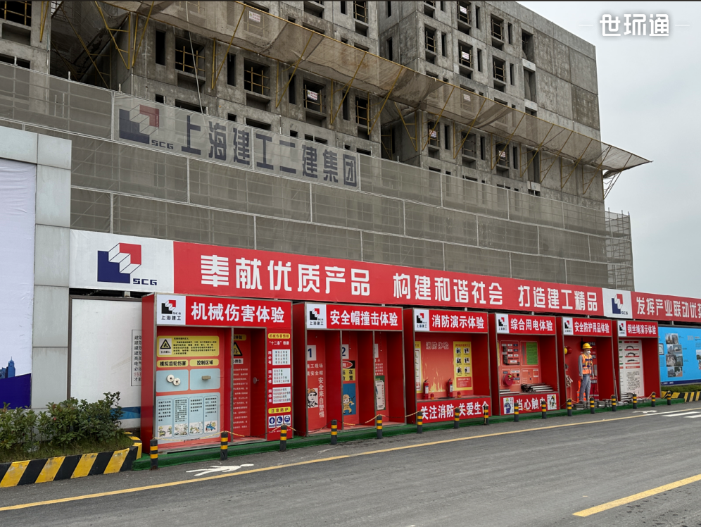 项目设有沉浸式安全体验区,相比说教式教育更能让施工人员接受,来提升施工人员的安全生产意识。工人宿舍区标准化管理,采用可周转式集装箱临时用房。