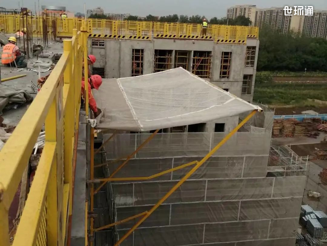 可折叠工具化抛网全钢制作,可挂设双层安全网,具备可折叠的收纳属性。利用工具化固定架,将定型化可折叠平挑网固定在预制墙板上,以形成施工层面上的安全封闭。所有操作均可在楼层内完成,大幅减少安全隐患。