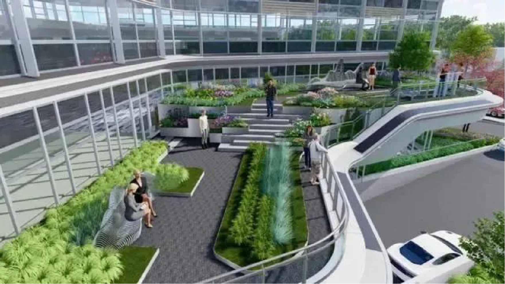 屋顶花园与光伏棚架效果图