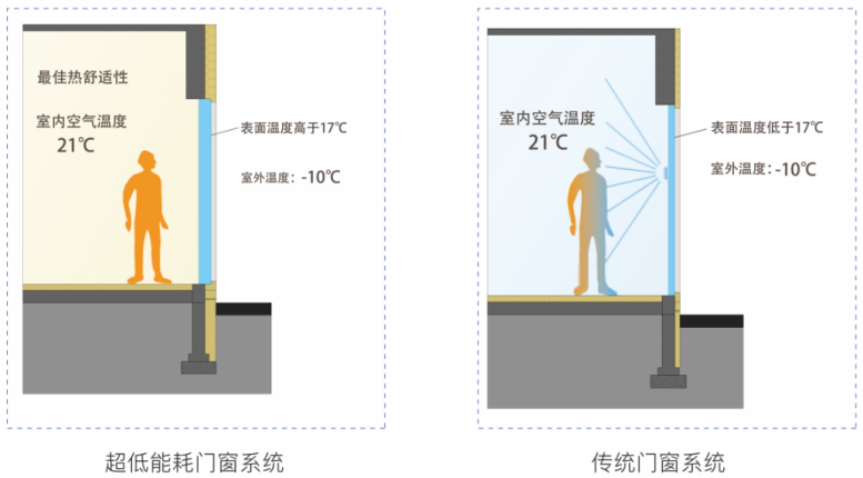 本项目采用三玻两腔单银Low-E高性能门窗,K≤1.2W/㎡K。
