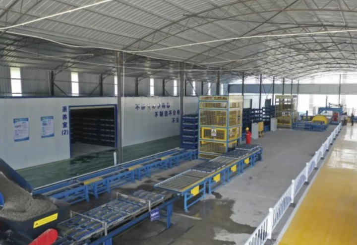 目前项目启用的小型预制构件自动化生产线属全省唯一,整个生产过程全部由机械自动完成,从原料到成品的关键步骤被整合为预制、蒸养、脱模、码垛、成品存放区、货架分解区等6个功能区。