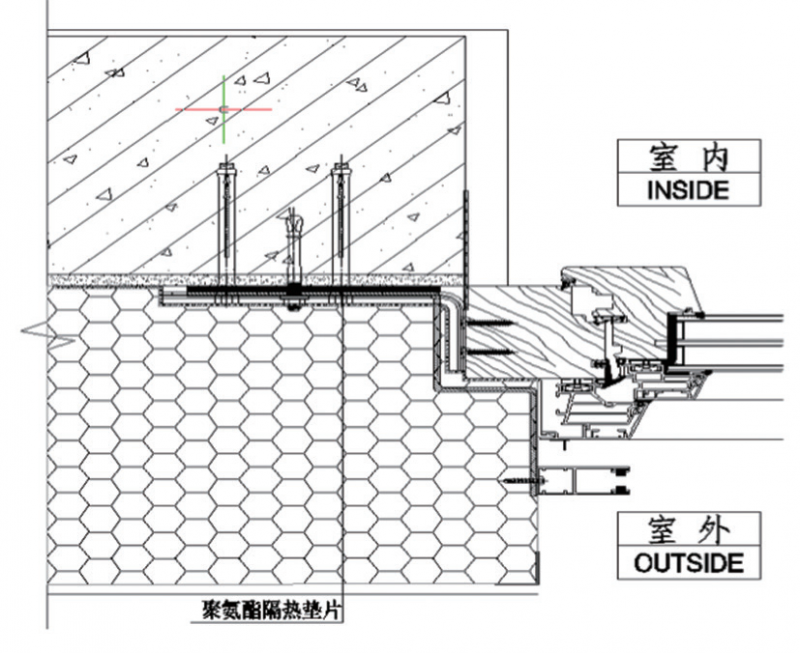 通过图2安装节点图可以看出,外遮阳预埋件如果与墙体直接接触会造成冷热桥的产生,从而影响建筑的整体性能。因此在外遮阳预埋件与墙体之间添加了聚氨酯隔热垫片,使两者不直间接触,从而避免产生冷热桥。
