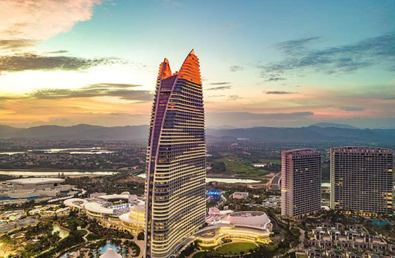 主楼高226米,由世界顶级建筑师和设计师团队精心打造。外观像一艘远航的帆船,奇幻斑斓的海洋元素结合了精致和豪华的现代设计,将高端休闲度假体验提升到了一个新的高度。
