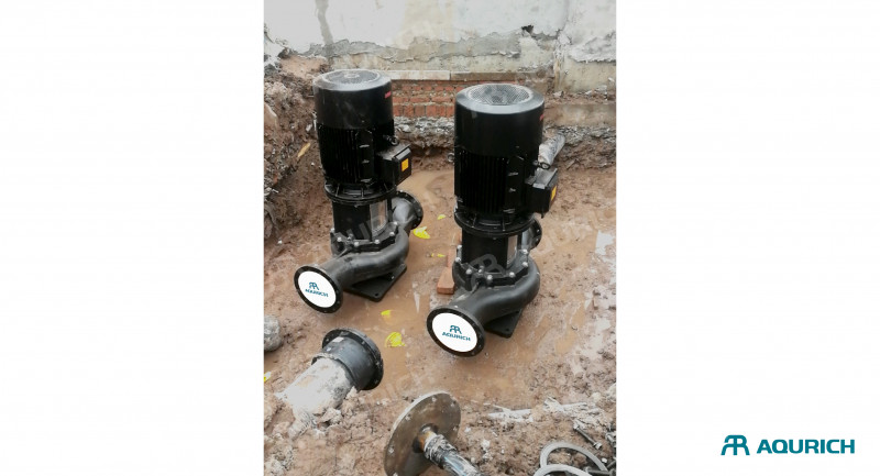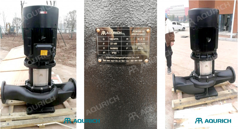 AQURICH(阿科瑞)技术工程师亲自勘察了现场,计划采用PC系列立式管道泵的技术方案,单台流量为180m3/h,扬程为32.6m,