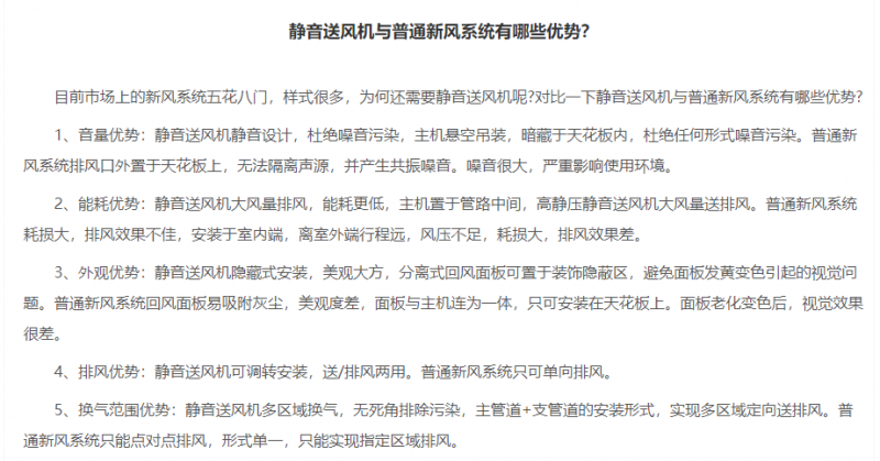 静音送风机与普通新风系统区别,其优势的体现如下: