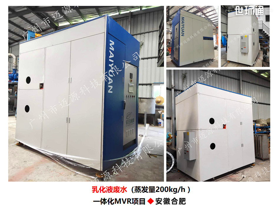 项目位于安徽省合肥市,迈源为安徽某润滑油公司提供了一体化MVR 蒸发设备。处理对象为机加工乳化液废水,应用了迈源MYM200