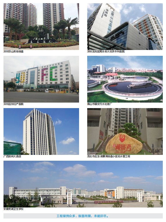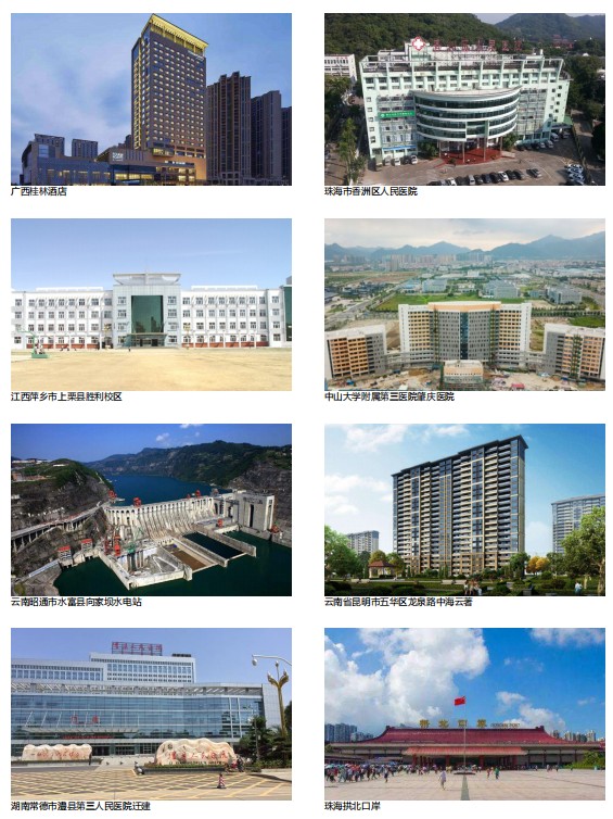 益家标杆项目:中山三乡医院、深圳福田会展中心、佛山北滘地铁、珠海拱北口岸、广西贺州大酒店、湖南省湘潭市湘乡305铝厂2800户旧房改造工程、安徽芜湖卫生学校
