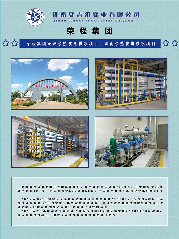 济南安吉尔实业有限公司与2012年2013年连续两年为荣程集团打造热电水质处理设备 供水设备并获得了良好的口碑和评价!