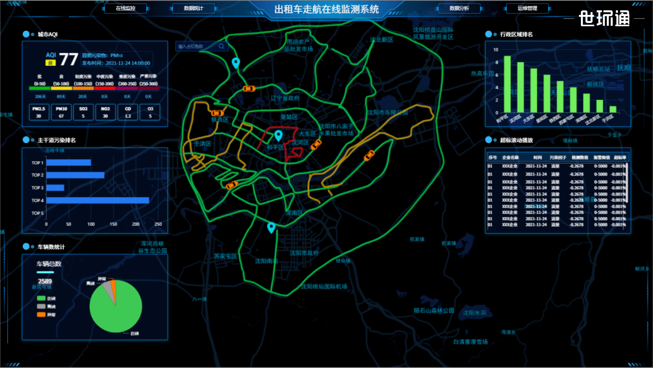 走航式大气监测系统,是由传感器、数据传输设备、监控平台、显示设备等组成,可以对不同的污染源进行连续不间断的监测,以达到及时发现污染源、及时解决问题的目的。走航式大气监测系统通过传感器对大气中的 PM2.5、PM10、 CO、O3、SO2等污染物进行连续监测,在系统中通过对这些数据进行分析,判断是否超标,并结合 GIS地理信息系统对数据进行直观地显示和管理,以便相关人员及时采取应对措施。有效地提高了环境监管水平,从而降低了环境污染事故发生的概率。
