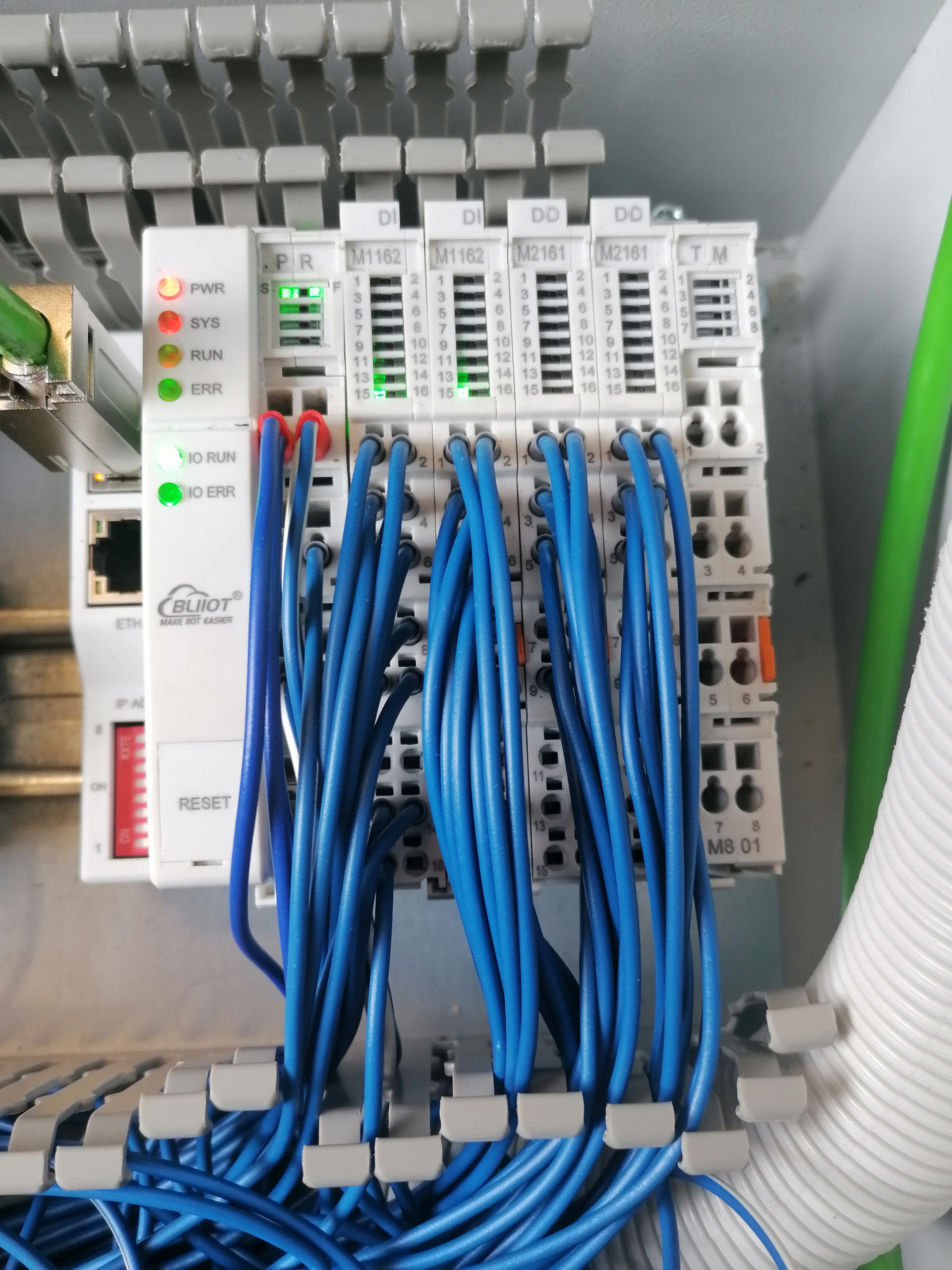 钡铼技术这款I/O产品拥有丰富的输入输出模块,能够分别控制工位动作和输送电气系统,例如,通过数字量输入模块采集限位开关信号、传感器信号、按钮信号,并通过数字量输出模块控制继电器、接触器、电磁阀等