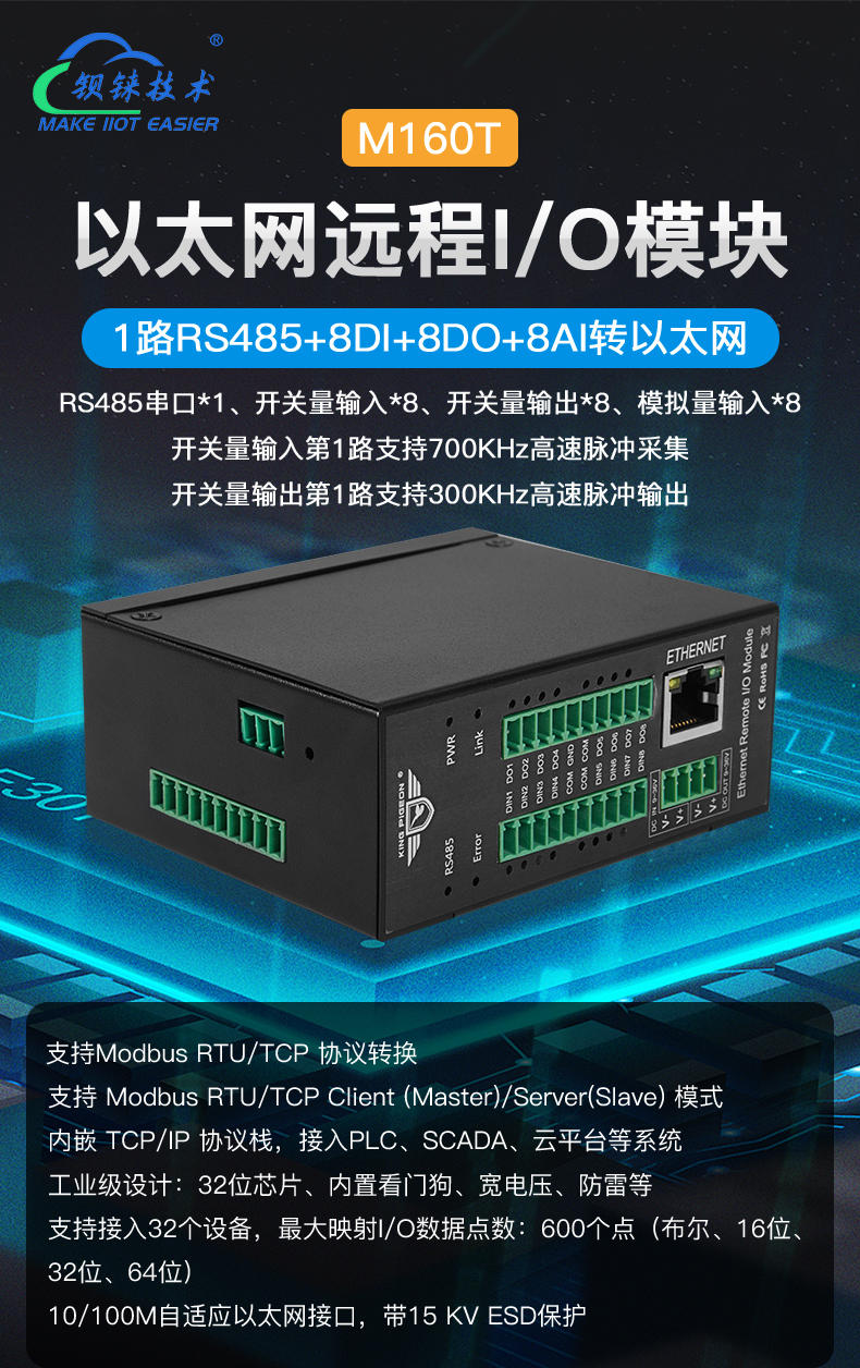 1. 通信稳定,响应快,内置边缘功能,不需要上位机和云平台或者PLC就能实现本地的I/O信号的联动控制;