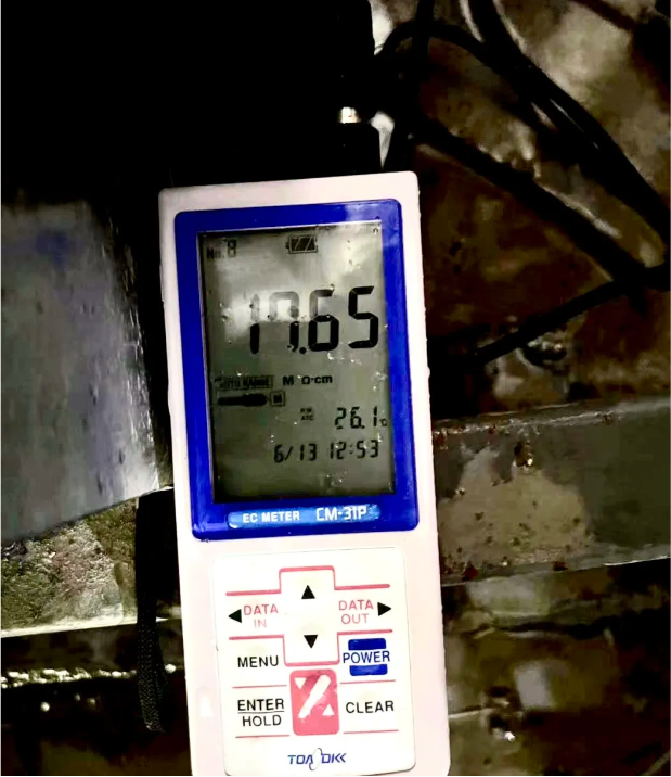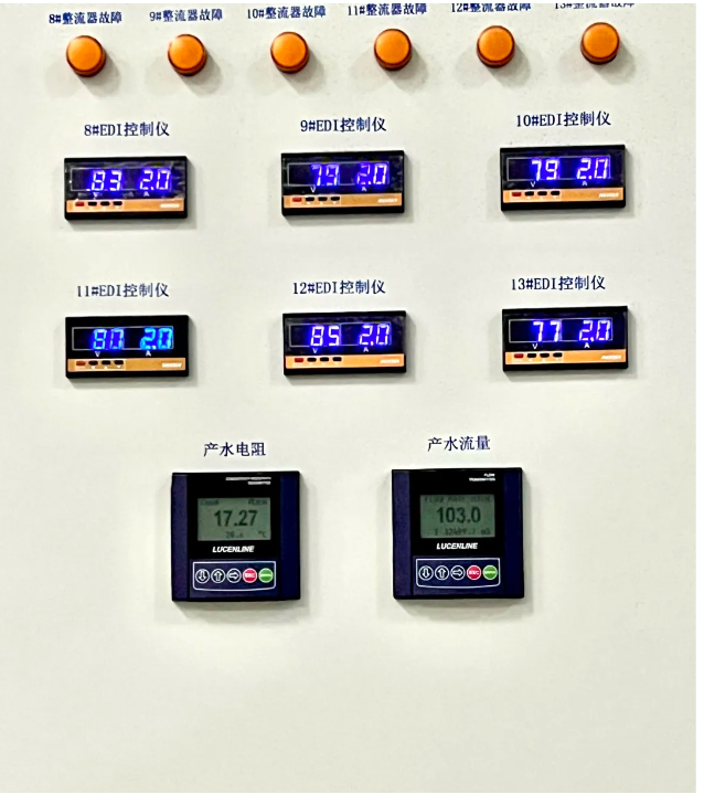 本项目中4*100吨/小时的产水量规模要求,使用了4*13台LX8000Z膜堆,经现场调试,单台膜堆的产水流量达到 8m3/h以上,产水电阻率大于17MΩ.cm,淡水压差控制在2.2-2.4bar范围内。
