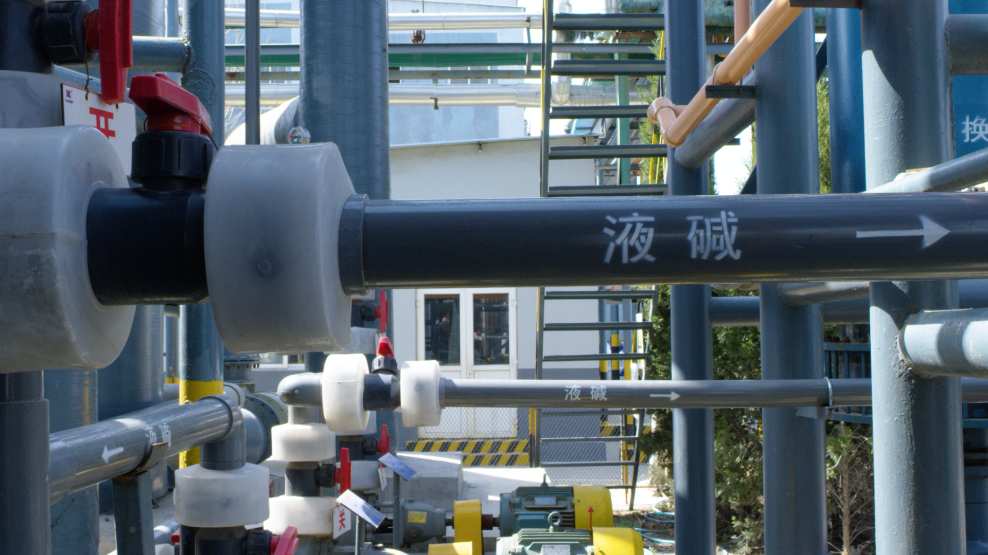 PVC-C由于其优秀的耐腐蚀性能,可在氯碱工艺中大量应用。热碱液(阴极液)、含氯淡盐水(阳极液)、盐酸、湿氯气、氯水、次氯酸钠、稀硫酸等腐蚀介质一般采用PVC-C材料的管道输送。
