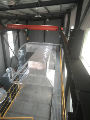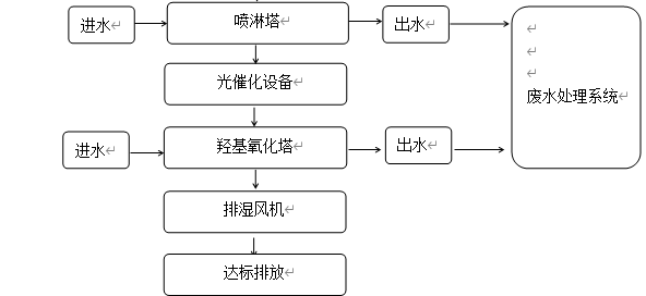 (4)经前两道工序处理后,废气得到高效处理,经风机牵引至排气筒,最后达标排放。