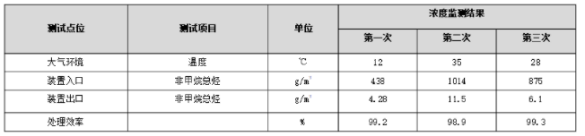 表1为本装置尾气浓度经第三方检测结果,满足国家标准排放要求。从表1可见,进口浓度在夏季工况下非常高,因此投用油气回收装置具有安全,环保和经济必然性。