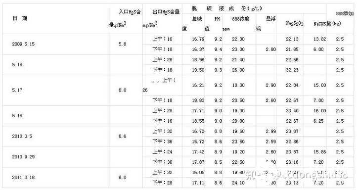 以上煤气由于用途的关系,对出口要求不是很高,所以总碱度和催化剂含量控制的都比较低,脱硫效率提高空间还是很大的。