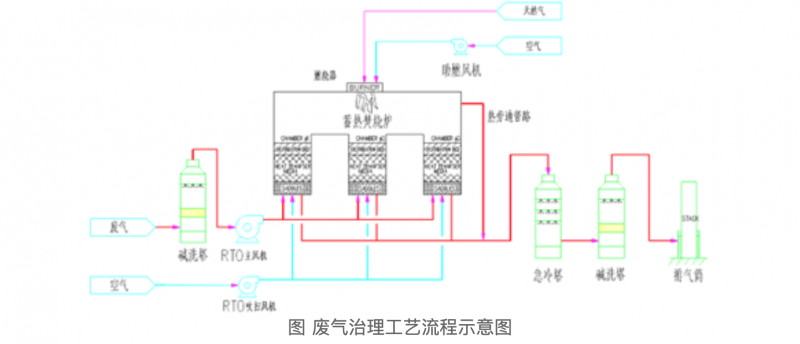 考虑甲方废气特点及较高的排放要求,并结合业主自身条件,我方建议选择“碱洗(脱硫)+蓄热式焚烧+急冷塔+碱洗吸收”组合工艺进行废气治理。