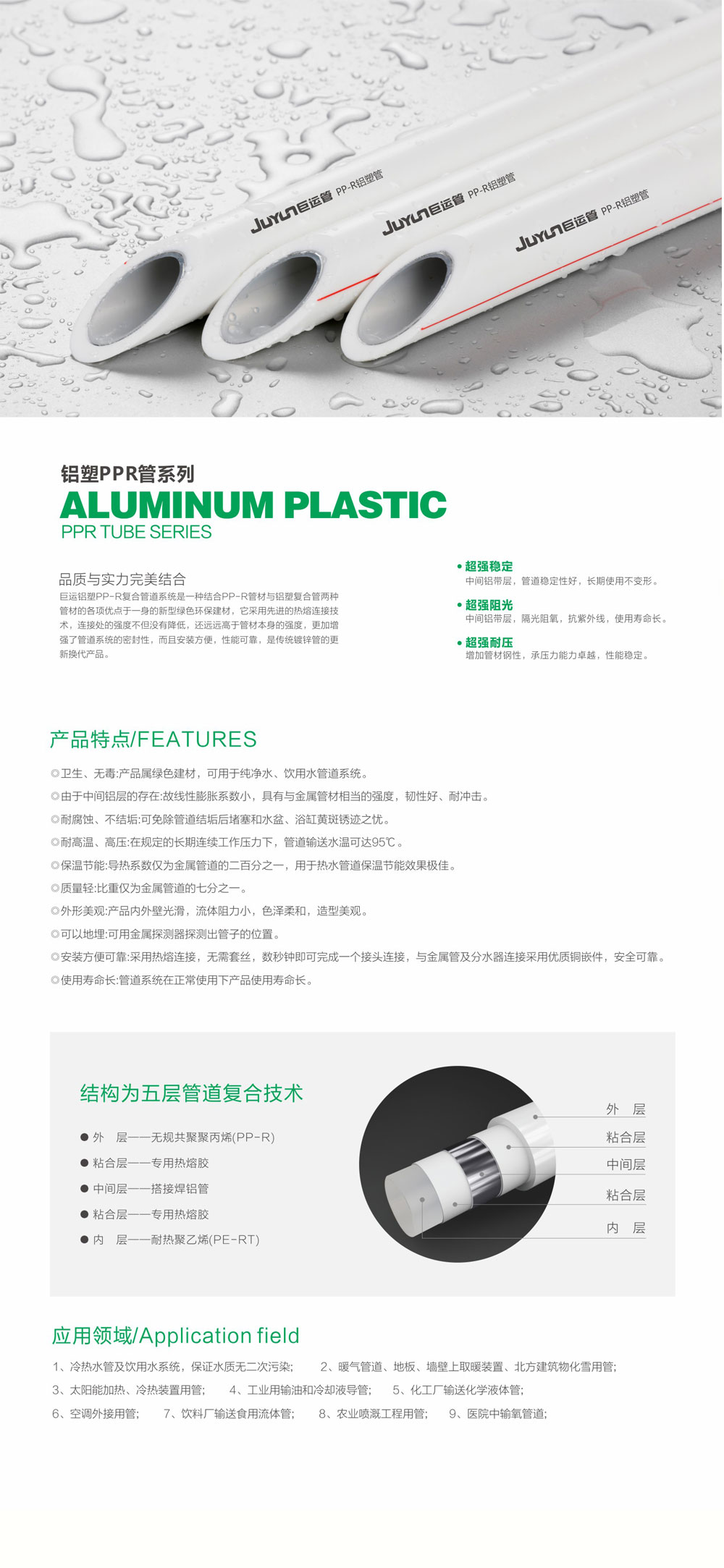 主营产品:PP-R管/管件,PE管/管件,PB管/管件,PVC管/管件,电工管套/穿线管,铜水管/管件,铜水阀/不锈钢水阀,铜水管/管件,铜水管/管件