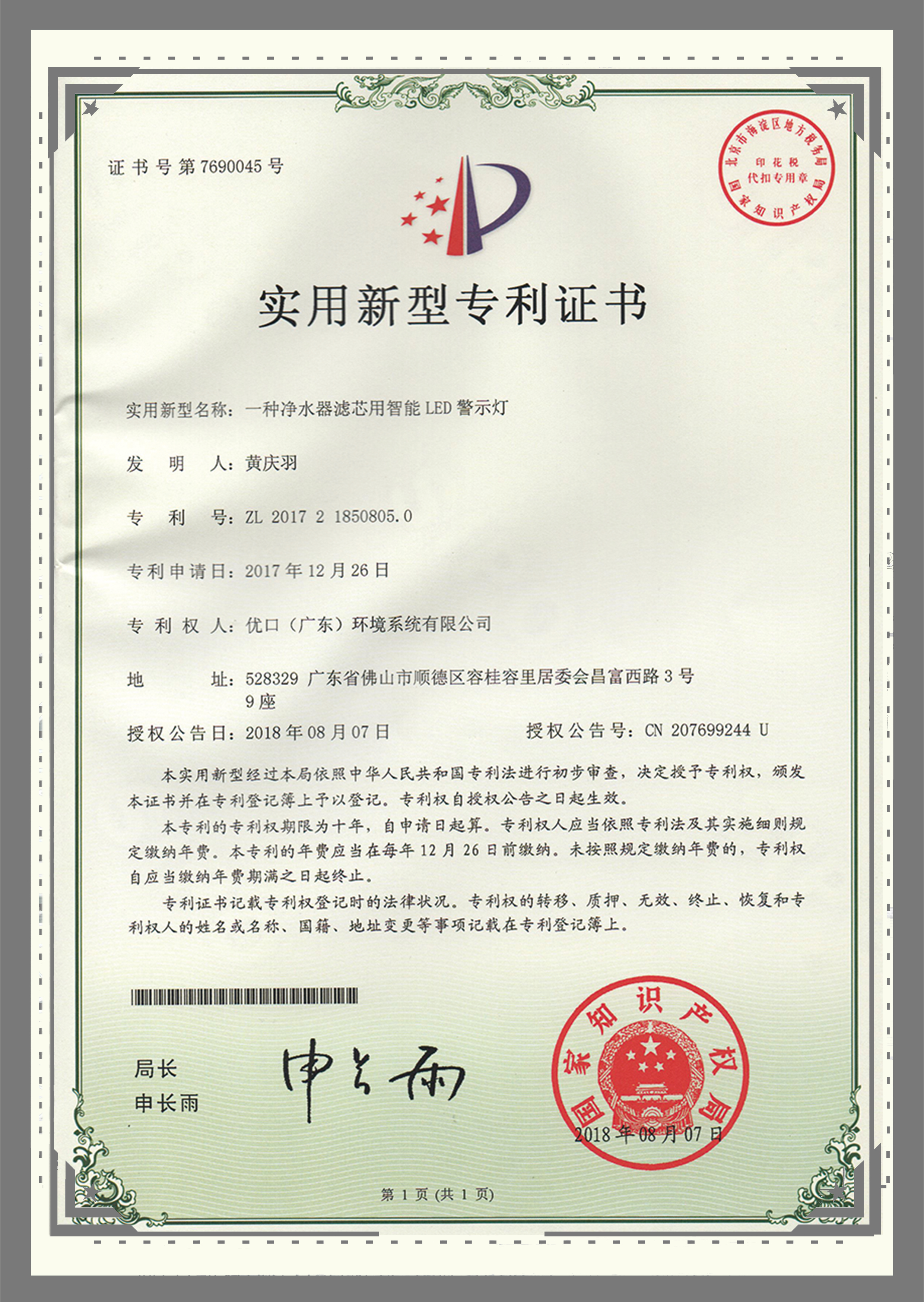 一种净水器滤芯用智能LED警示灯 2026-04-29 永久