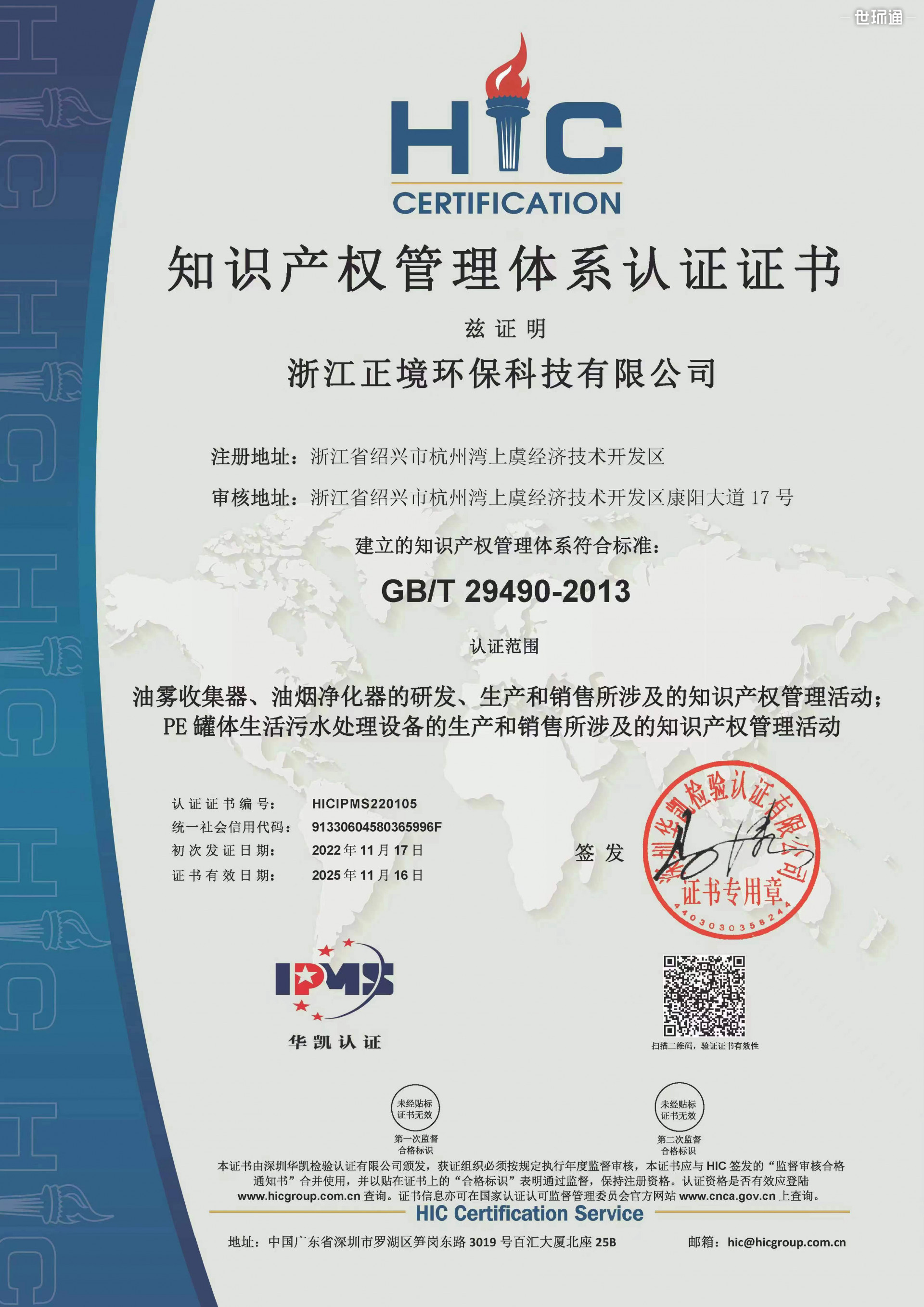 知识产权管理体系认证证书