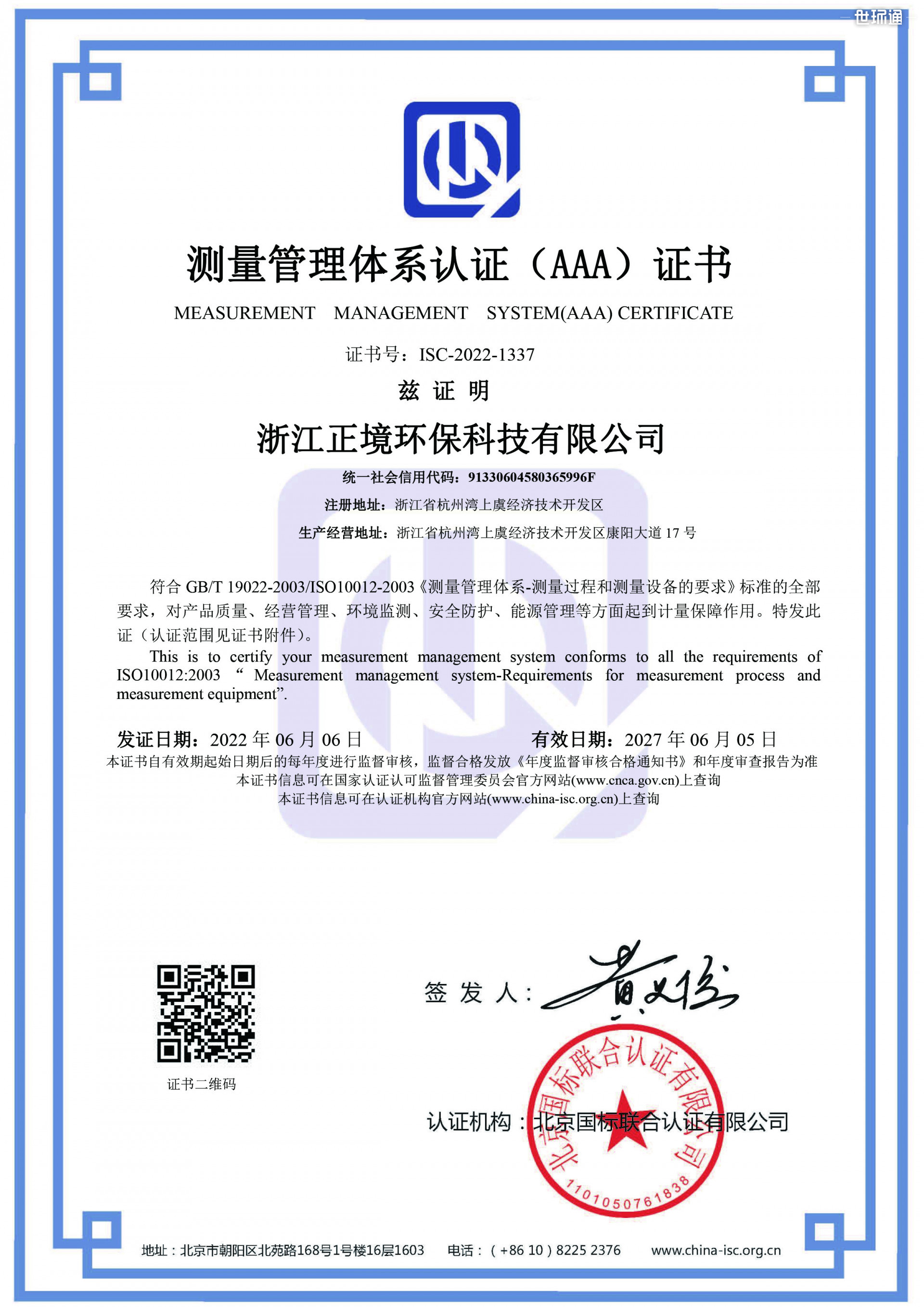 首页 > 荣誉资质 > 测量管理体系认证证书