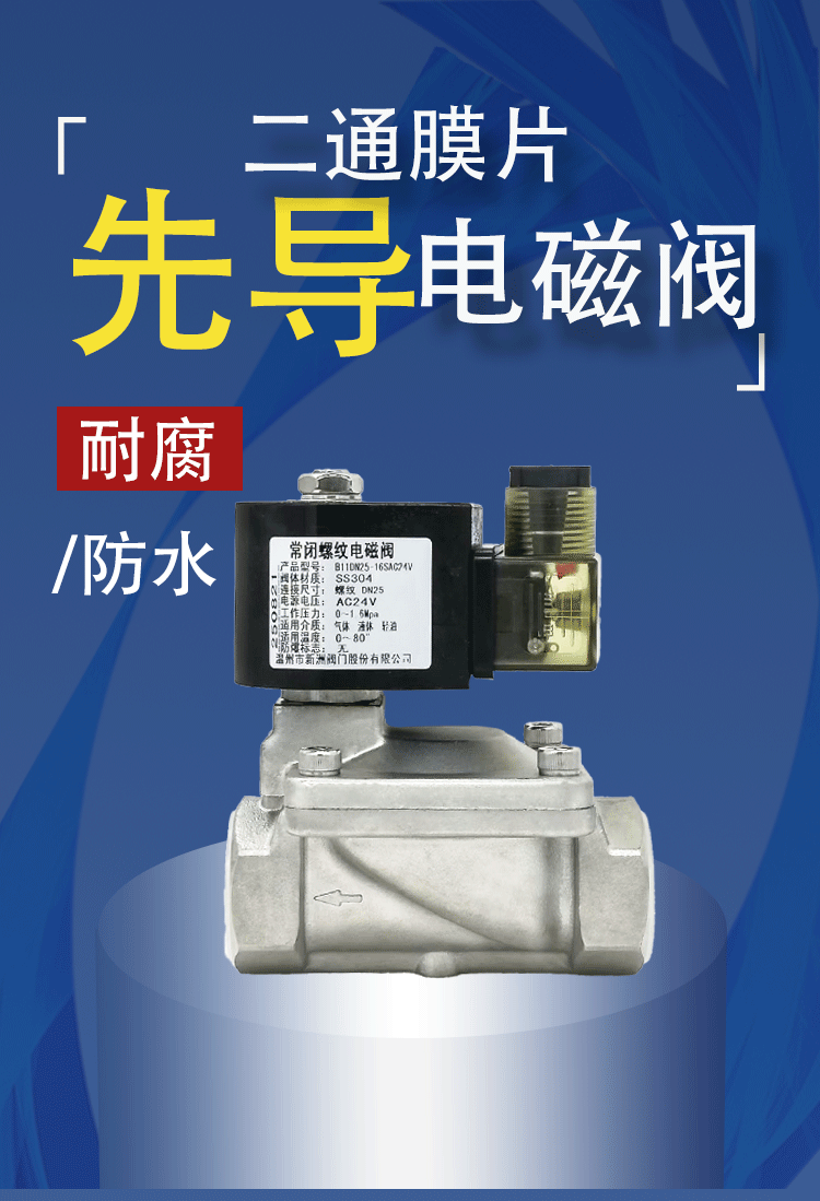 B11DN-先导膜片电阀它广泛应用于石化、电力、机械、医疗、科研、灌装、楼字、工业窑炉、管道介质自动化控制等各个领域。