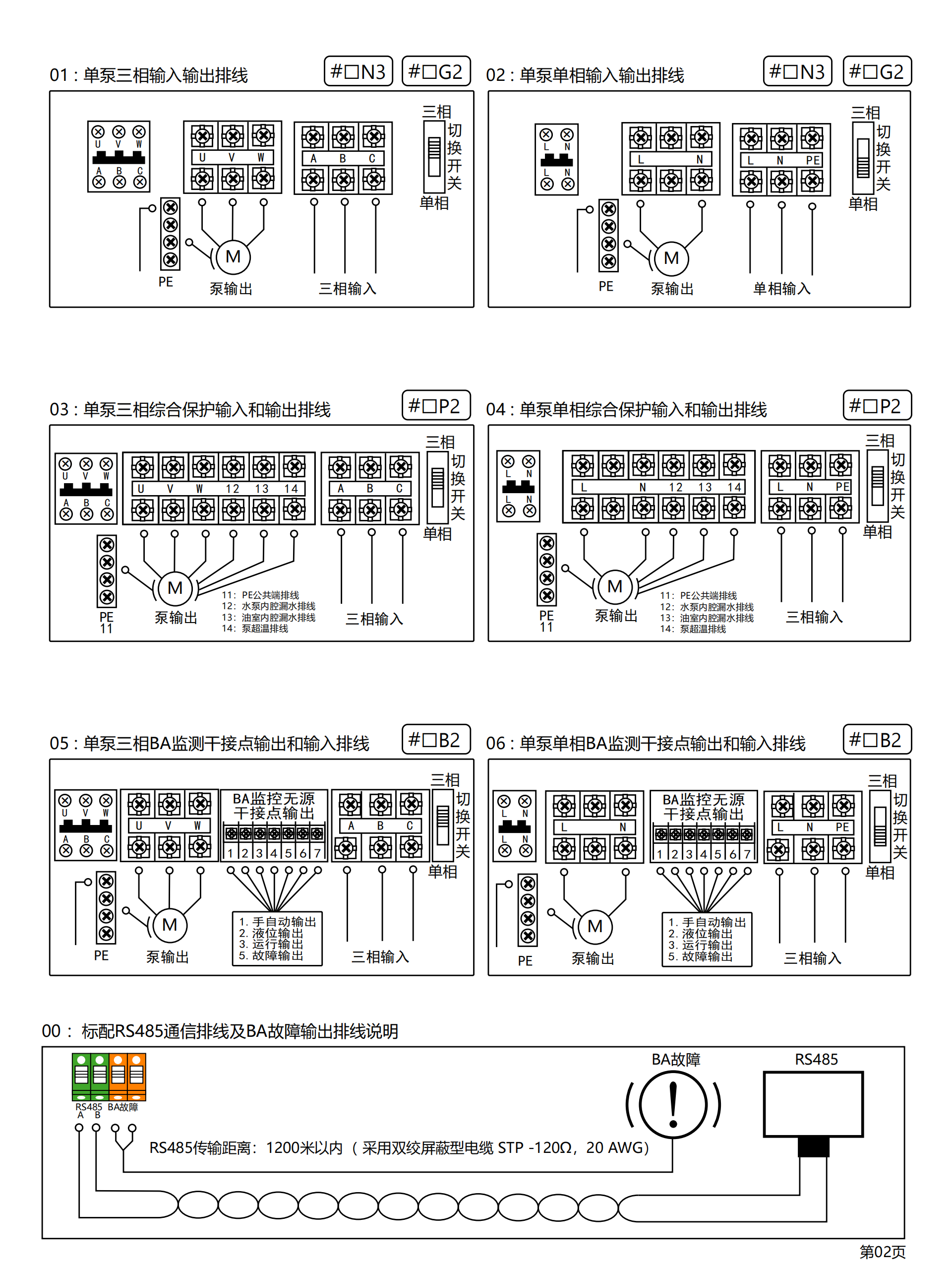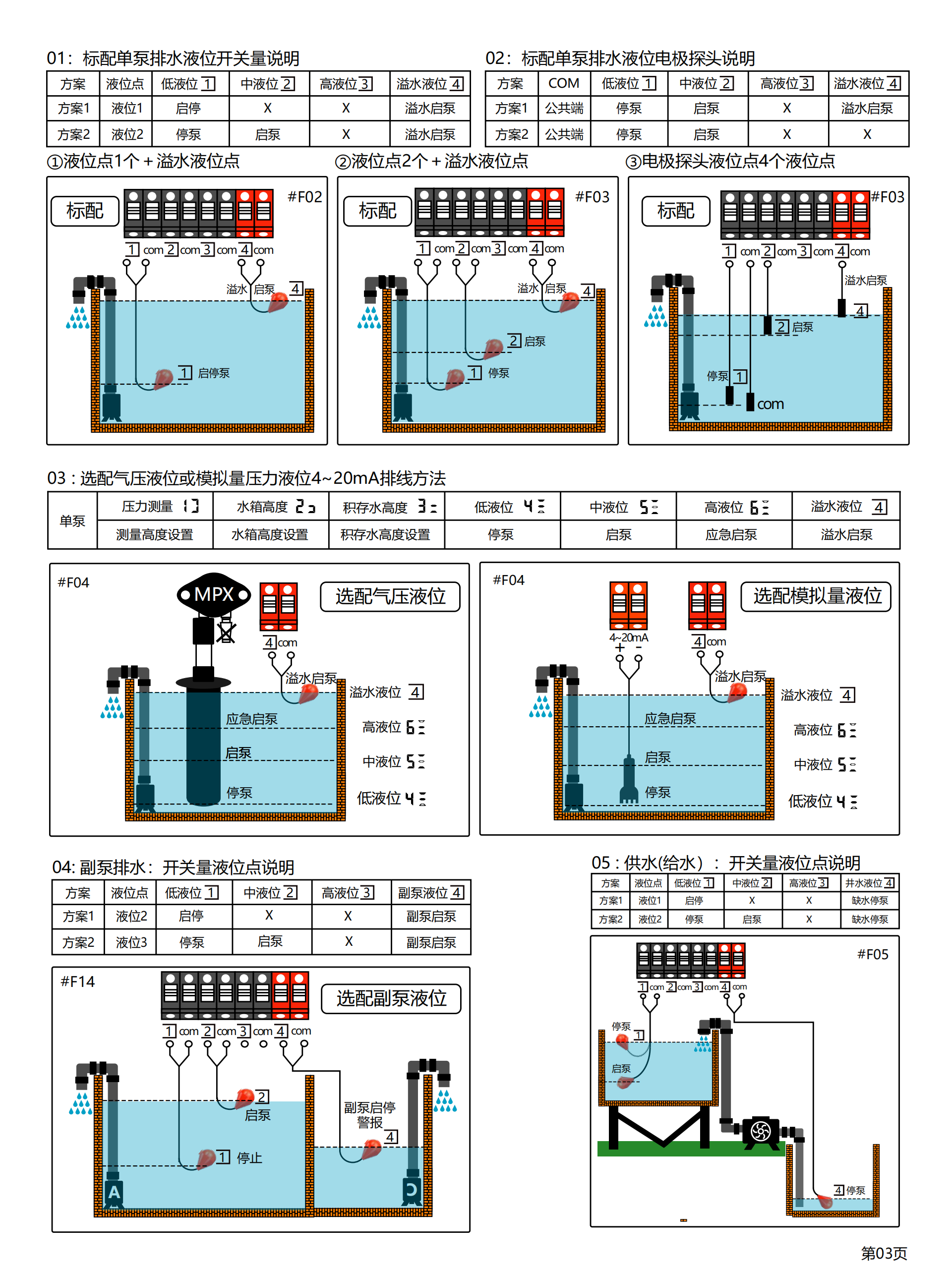 ◆液位控制方法选配:开关量/气压液位/模拟量液位4~20mA或0~5V
