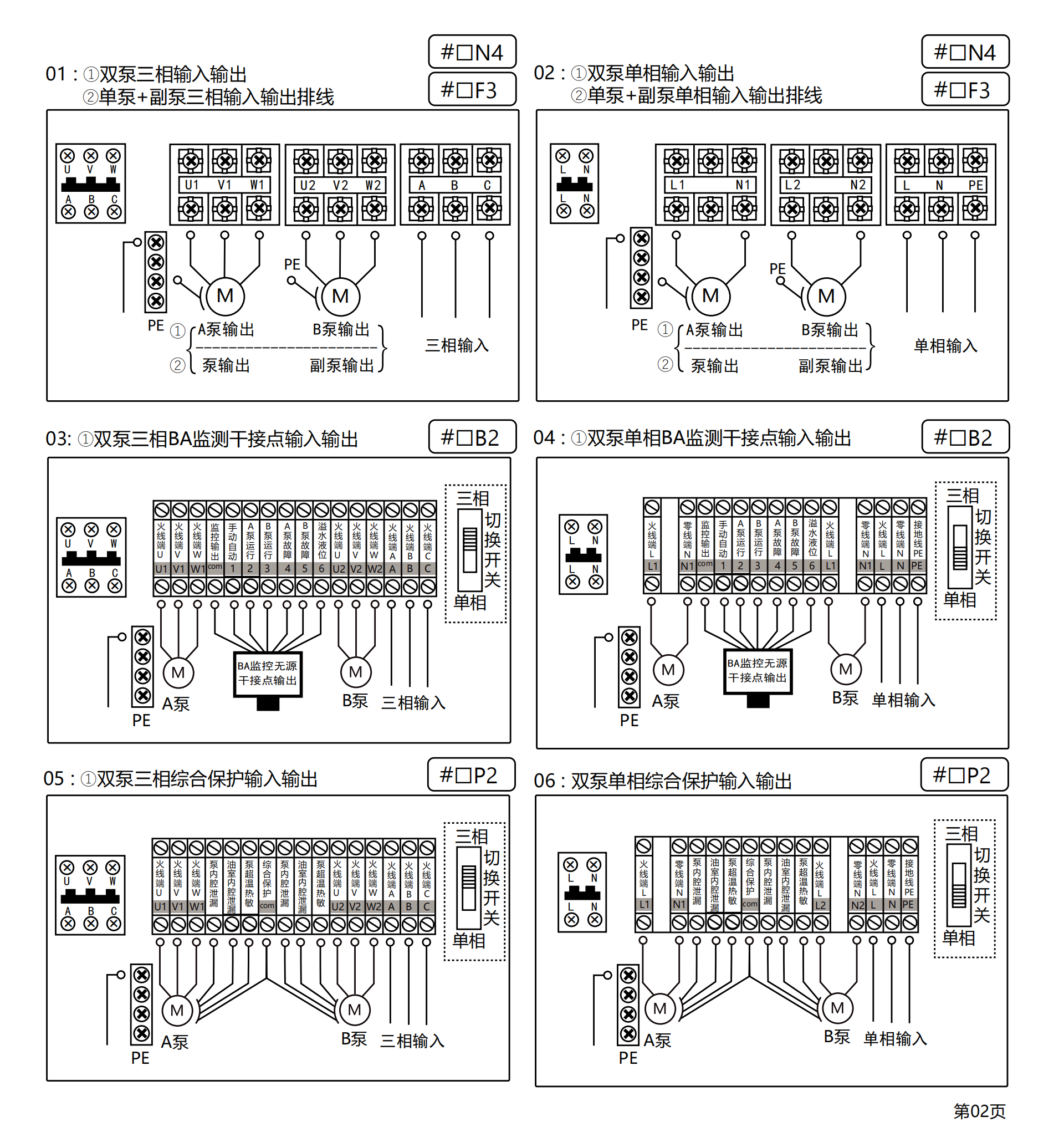 ◆干转,过载,堵转,缺相,欠压,过压,溢水等保护