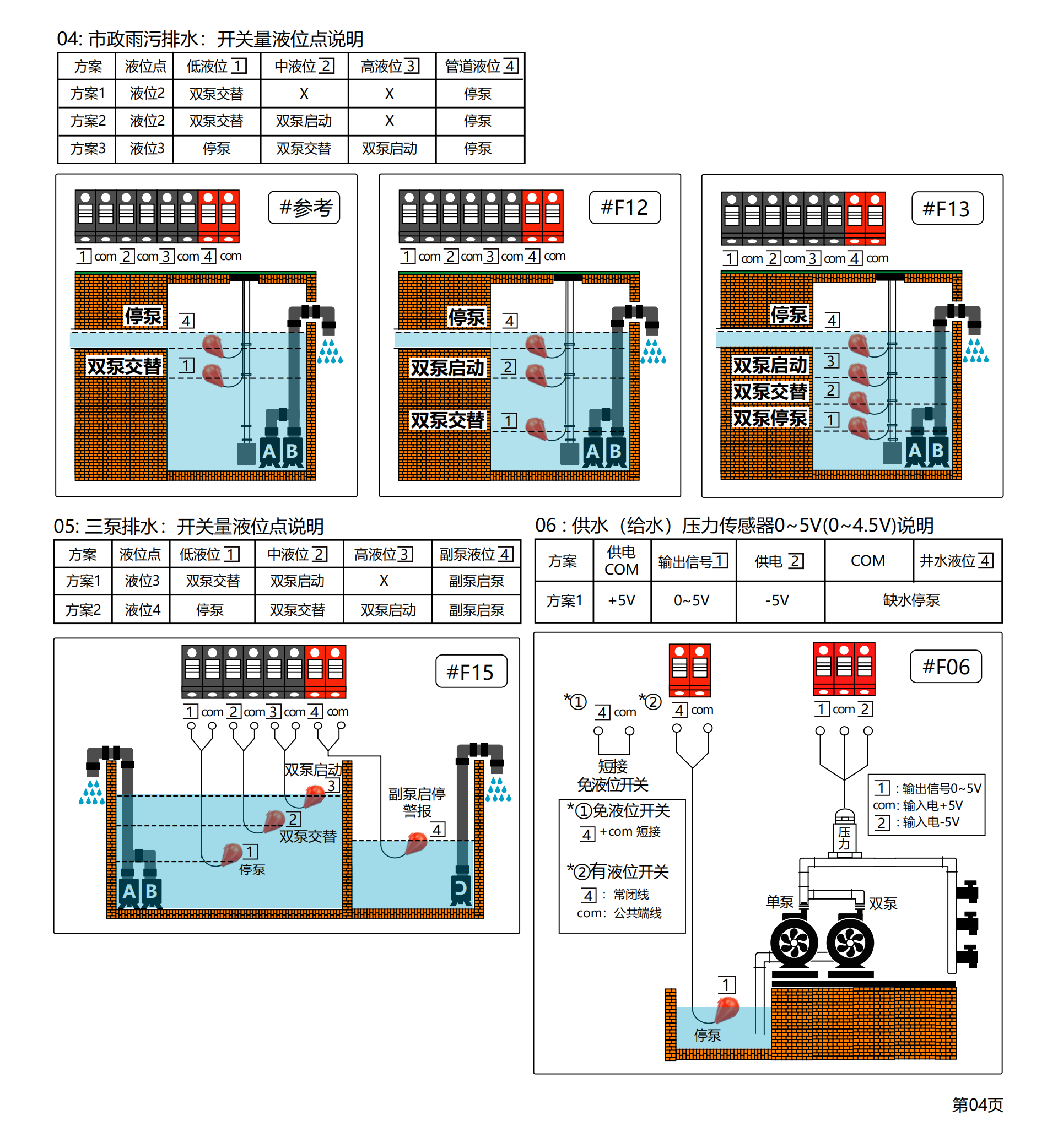 ◆液位控制方法选配:开关量/气压液位/模拟量液位4~20mA或0~5V