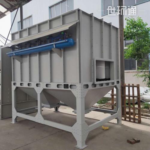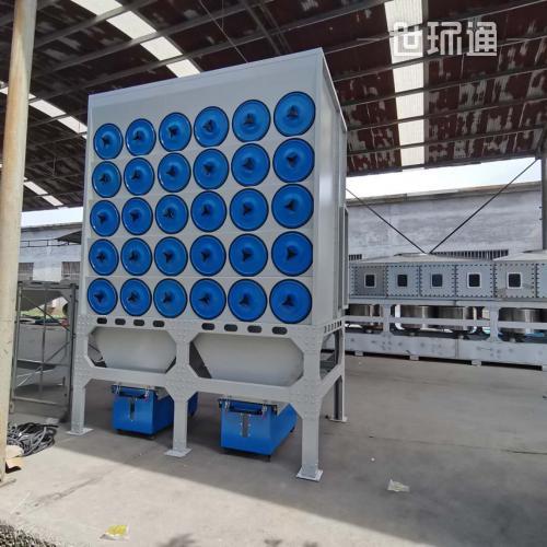 通过风机引力作用,焊烟废气经万向吸尘罩吸入设备进风口,设备进风口处设有阻火器,火花经阻火器被阻留,烟尘气体进入沉降室,利用重力与上行气流,首先将粗粒尘直接降至灰斗,微粒烟尘被滤芯捕集在外表面,洁净气体经滤芯过滤净化后,由滤芯中心流入洁净室,洁净空气又经活性碳过滤器吸附进一步净化后经出风口达标排出。