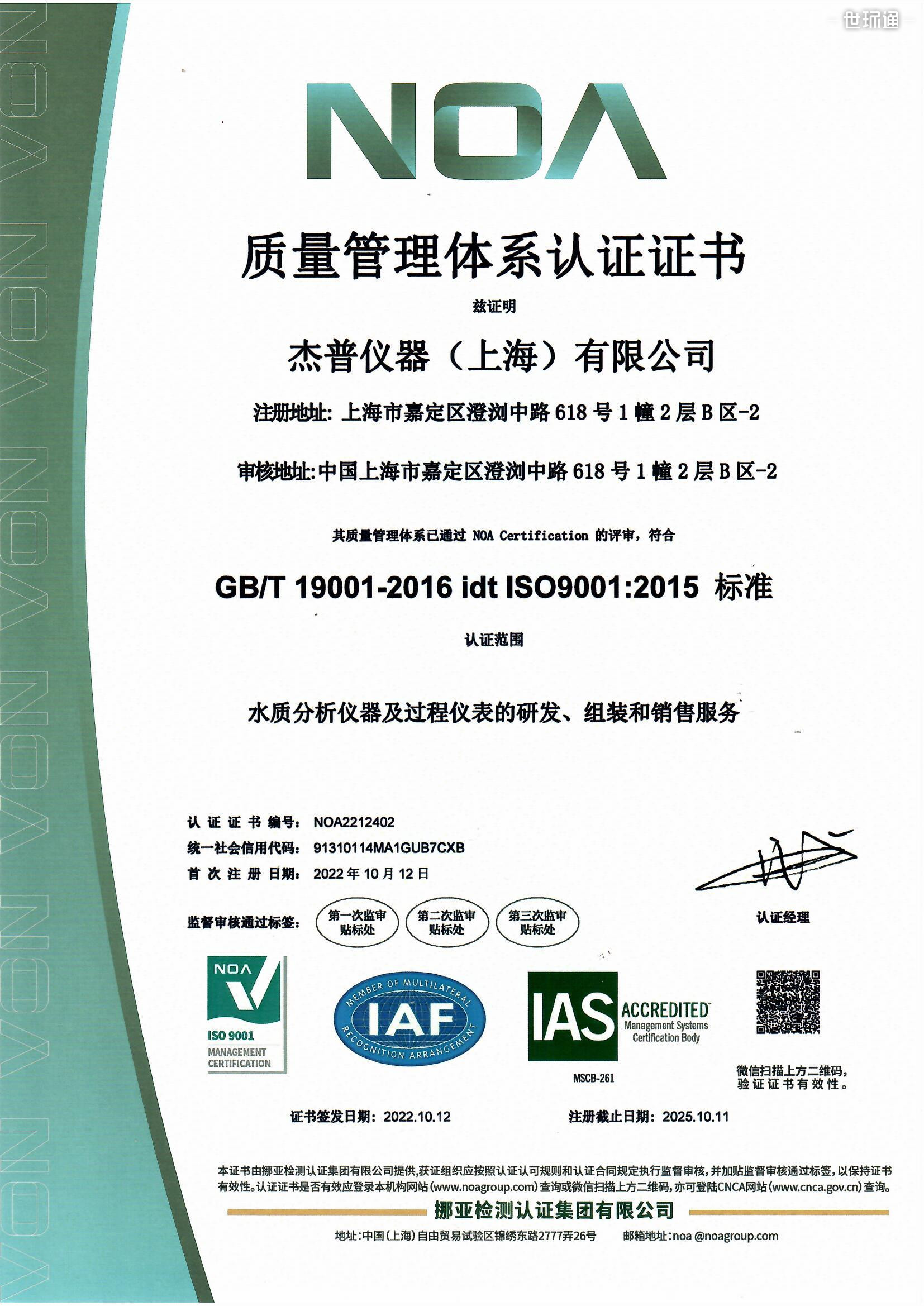 ISO质量管理体系认证证书