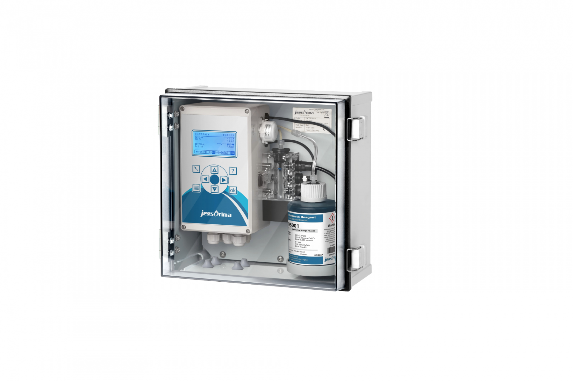 PACON 5000是一款结构紧凑、易于操作且测量精确的水质分析仪器,用于对水质残留硬度的自动在线检测以及水软化过程的质量控制。此系统根据滴定比色原理对可选择的报警值进行控制,通过消光法提供精确的测量值读数,多种功能保证了实时操作的可靠性。低维护和低试剂消耗,可长时间连续运行,是制药厂纯化水系统的常用产品。选择碱度试剂,可测量总碱度。目前超过 2000 台PACON 5000 在线硬度分析仪在中国安装使用