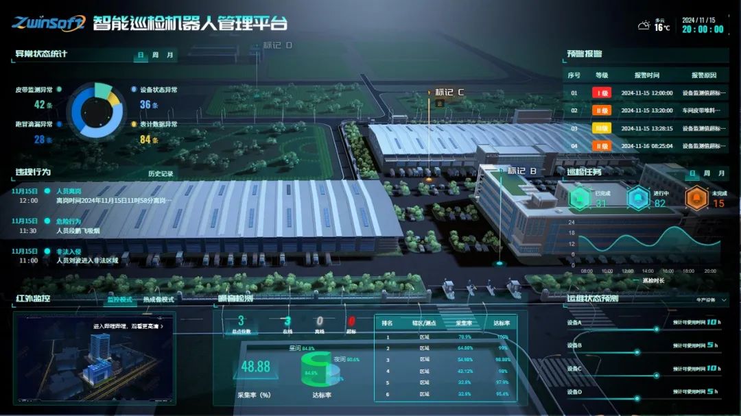 智能巡检逻辑,提供预设路径+AI避障功能,无需人工干预即可完成巡检任务;