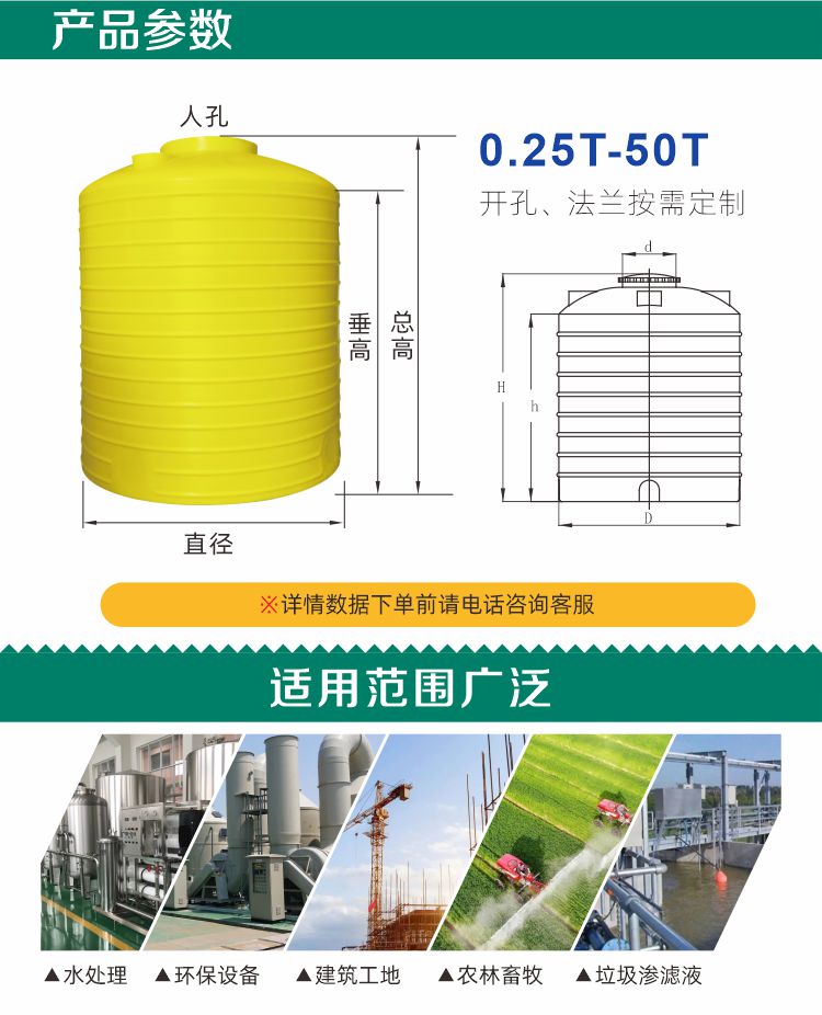 化工液体储罐,自来水处理次氯酸钠投加系统储罐,农业施肥罐,外加剂复配储罐等
