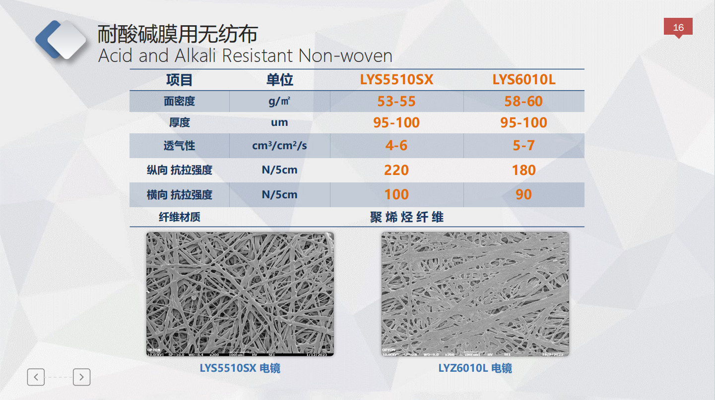 本公司生产无纺布,广泛应用于工业、家用反渗透膜、纳滤膜、超滤膜、mbr平板膜及电渗析领域,可年产各类水处理膜无纺布1000万㎡。