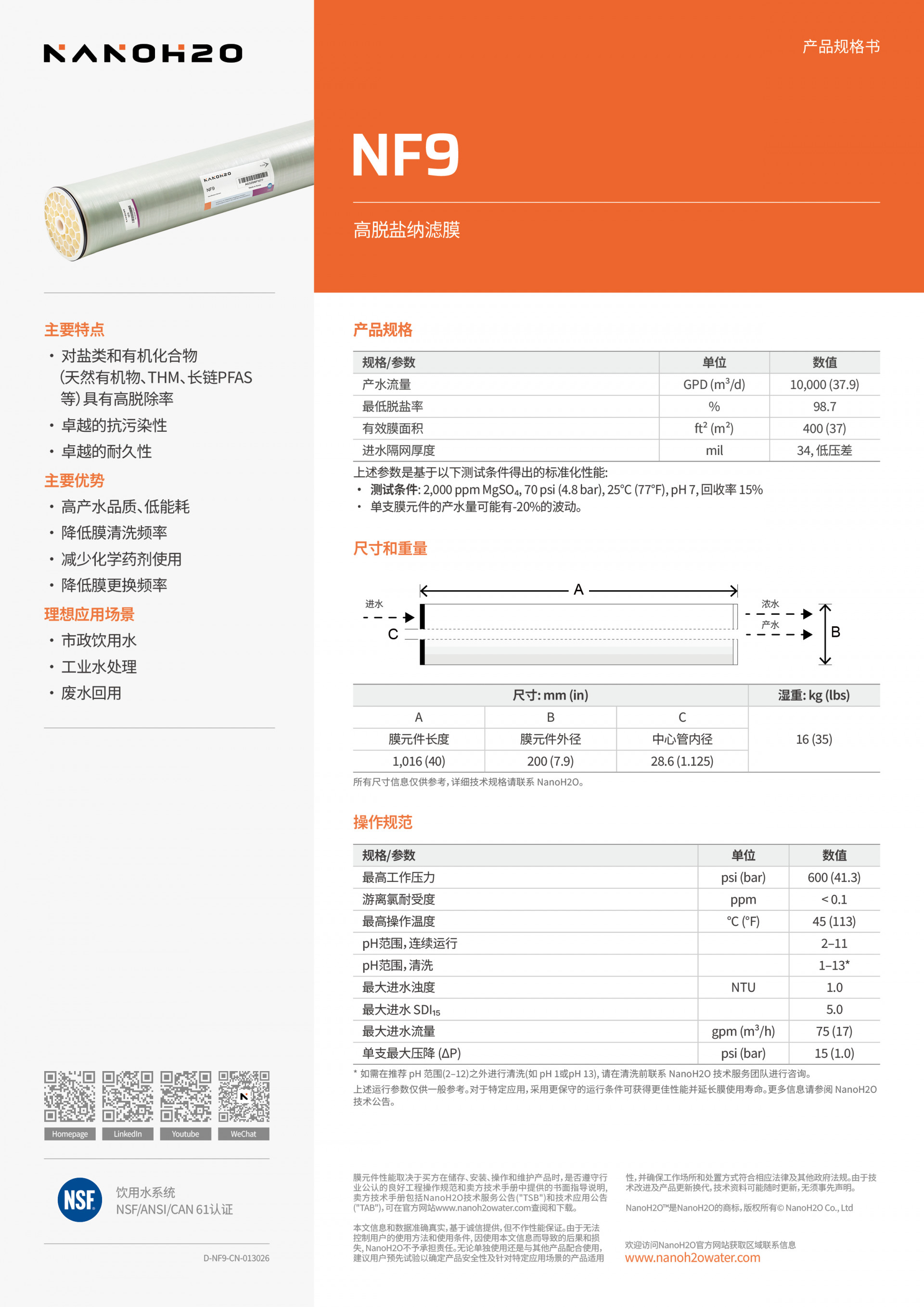 主营产品:MF微滤膜,UF超滤膜,NF纳滤膜,RO反渗透膜,膜组件,其他污废水处理成套设备及工程服务,RO反渗透膜,其他膜及相关产品,过滤器,贮罐/贮桶,其他供水系统及设备,反渗透成套设备,MF微滤膜,UF超滤膜,RO反渗透膜,MBR技术与设备,膜组件