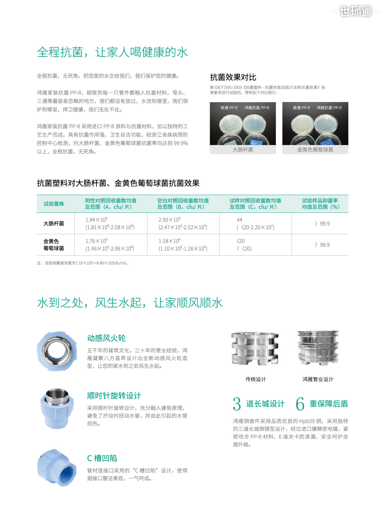 鸿雁pp-r采用先进生产工艺生产,管道内壁光滑,沿程阻力比小,能耗更低;原料纯正,是不腐蚀、不结垢、不滋生细菌的健康品质产品。