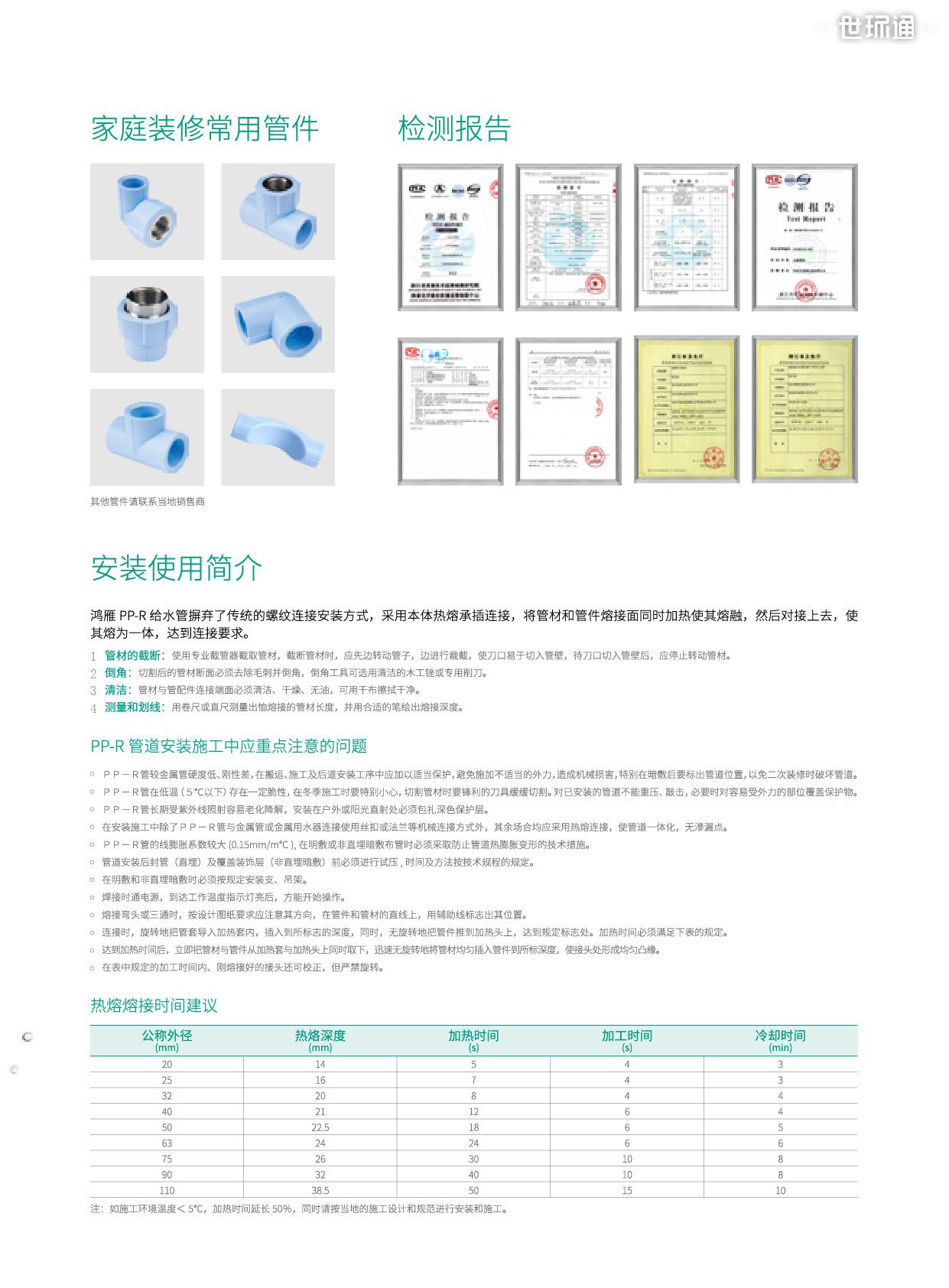 瞬间使用温度为95℃,长期使用时,温度可达70℃,(而实验研究表明,人用40℃左右的热水洗澡比较有益于健康,也比较舒适)。是目前最理想的室内冷热水管管道。具有良好的保温性能,用于热水系统时,一般无需额外保温材料。
