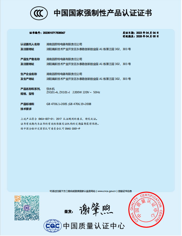 发证机构: 中国质量认证中心 发证时间: 2019-05-10