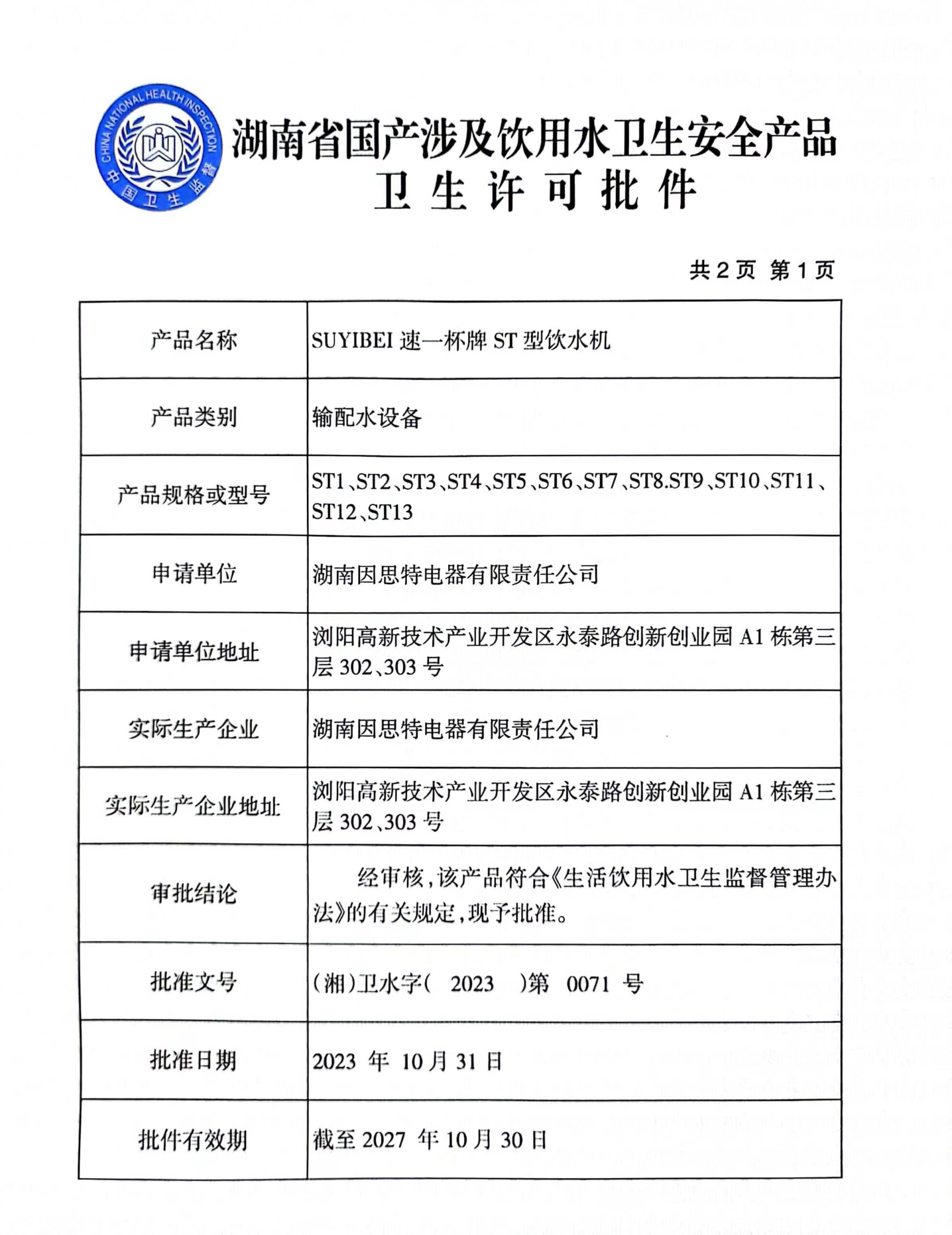 发证机构: 湖南省卫生健康委员会 发证时间: 2019-05-10