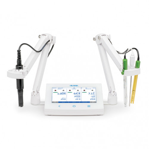 新型HI6000系列模块化多参数触摸屏实验室系统专为需要完美测量质量的研究和实验室专业人员而设计。HI6000 是一个完全灵活的实验室测量平台,可以根据用户的测量和应用需求进行定制。它使用最新一代技术设计和开发,使用户能够完全控制他们的测量,并对结果充满信心。多点校准(最多5个点)保证了最高的精度。 HI6000本质上是模块化的,允许同时安装Hanna Instruments提供的四个模块中的三个:pH/ORP、pH/ORP/ISE、溶解氧和电导率。结合适当的传感器,该设备可在大型触摸屏上显示快速、可靠的测量结果。上下文相关的帮助菜单和教程视频支持用户完成所有操作,提供非常用户友好的体验。 模块化多参数pH/ORP/ISE/EC/DO仪器HI6000系列轻松安装和更换模块 可以使用 1 到 3 个模块的任意组合。 ·多参数测量灵活性 ·即插即用设计 ·轻松安装