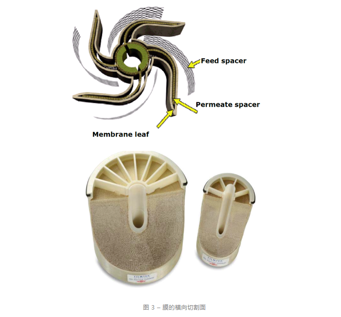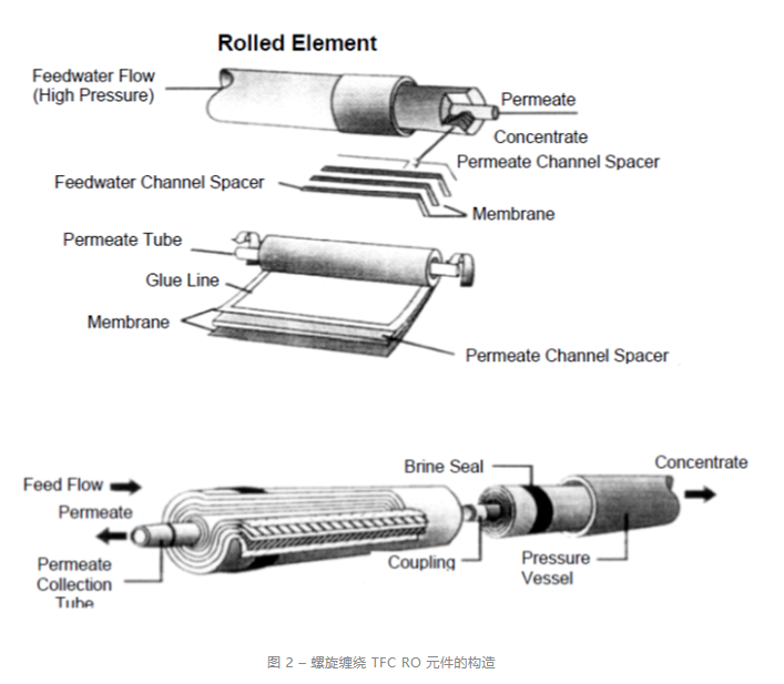薄膜复合膜以螺旋缠绕结构包装。在膜系统中,元件串联放置在压力容器内。