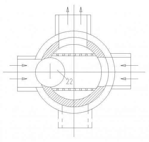 2、阀头旋转180度,封堵母管出口,检修时防止母管介质回流。