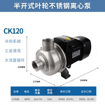 泵的水力部件为半开式叶轮,适用于食品行业、工业生产中循环清 洗系统或洗涤行业中的清洗设备,输送含有悬浮固体颗粒或对不锈 钢(SUS304)无明显腐蚀作用的非易燃易爆液体。